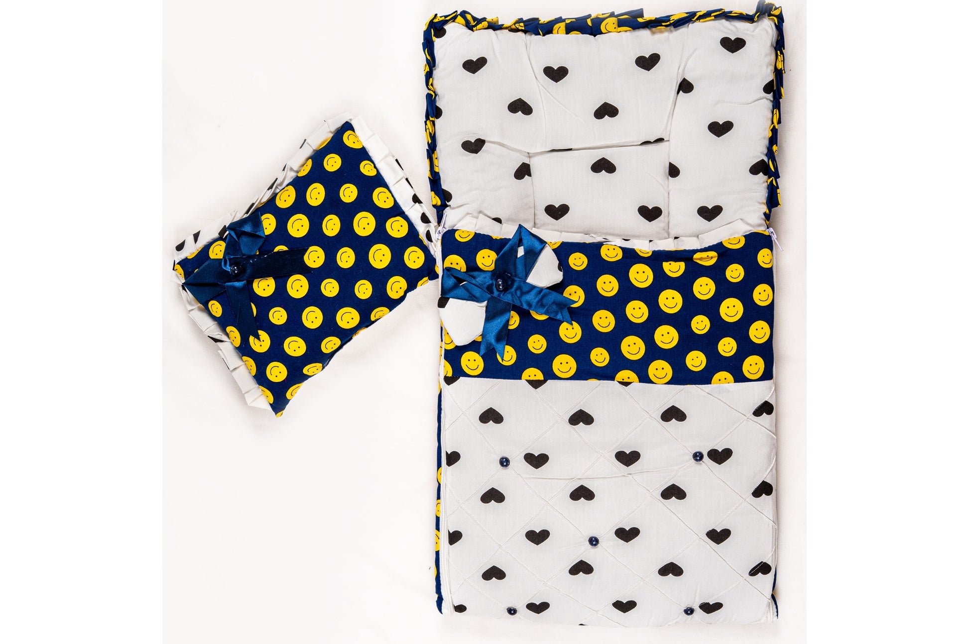 2-Piece Modern Baby Bedding Set – Yellow & Black Smiley Face Print