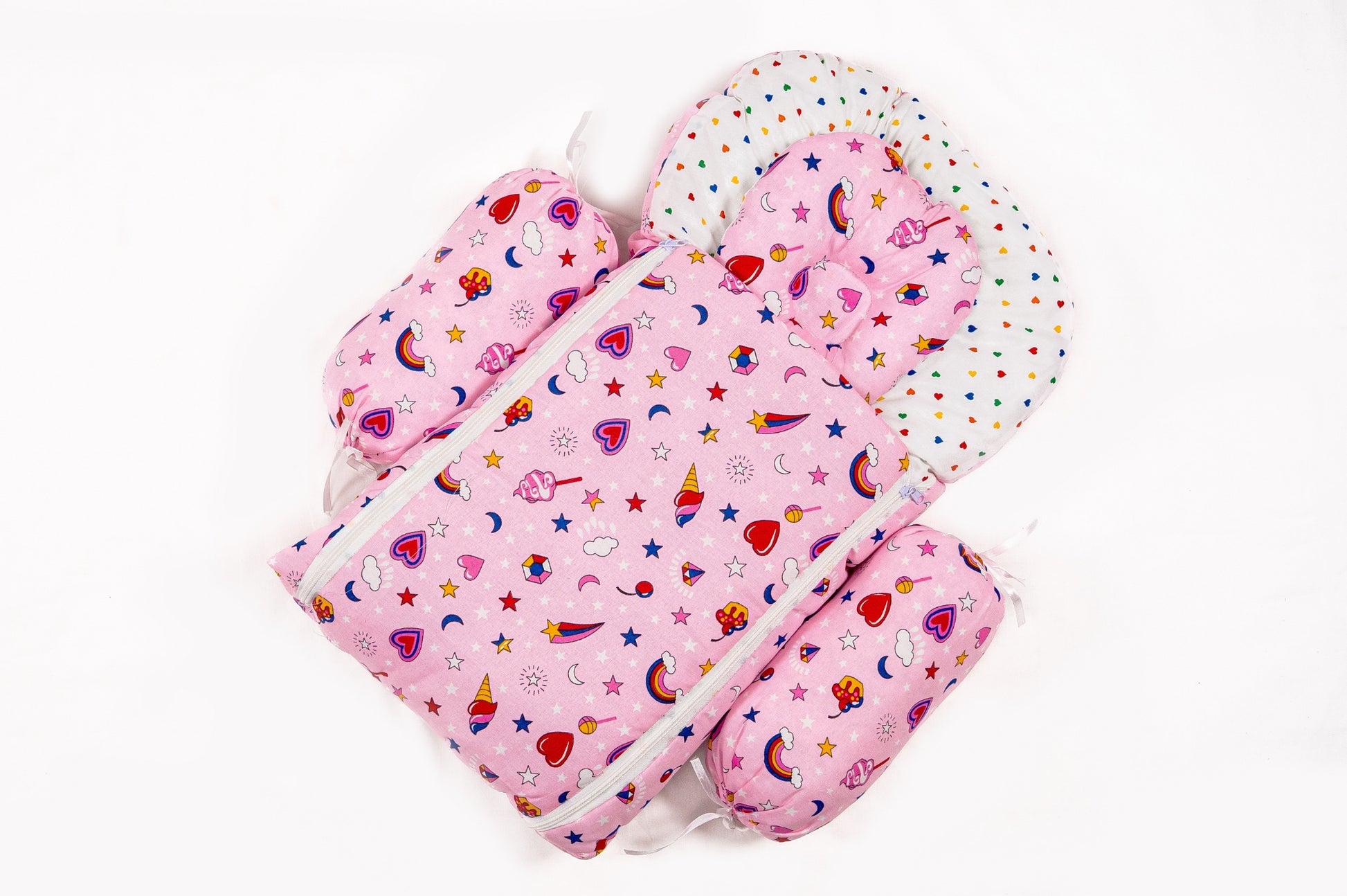 Ensure your baby’s comfort with this soft and supportive 8-piece bedding set, designed with an adorable print in a gentle color. Made with breathable fabric and padded for extra coziness, this set includes all the essentials for a safe and restful sleep.