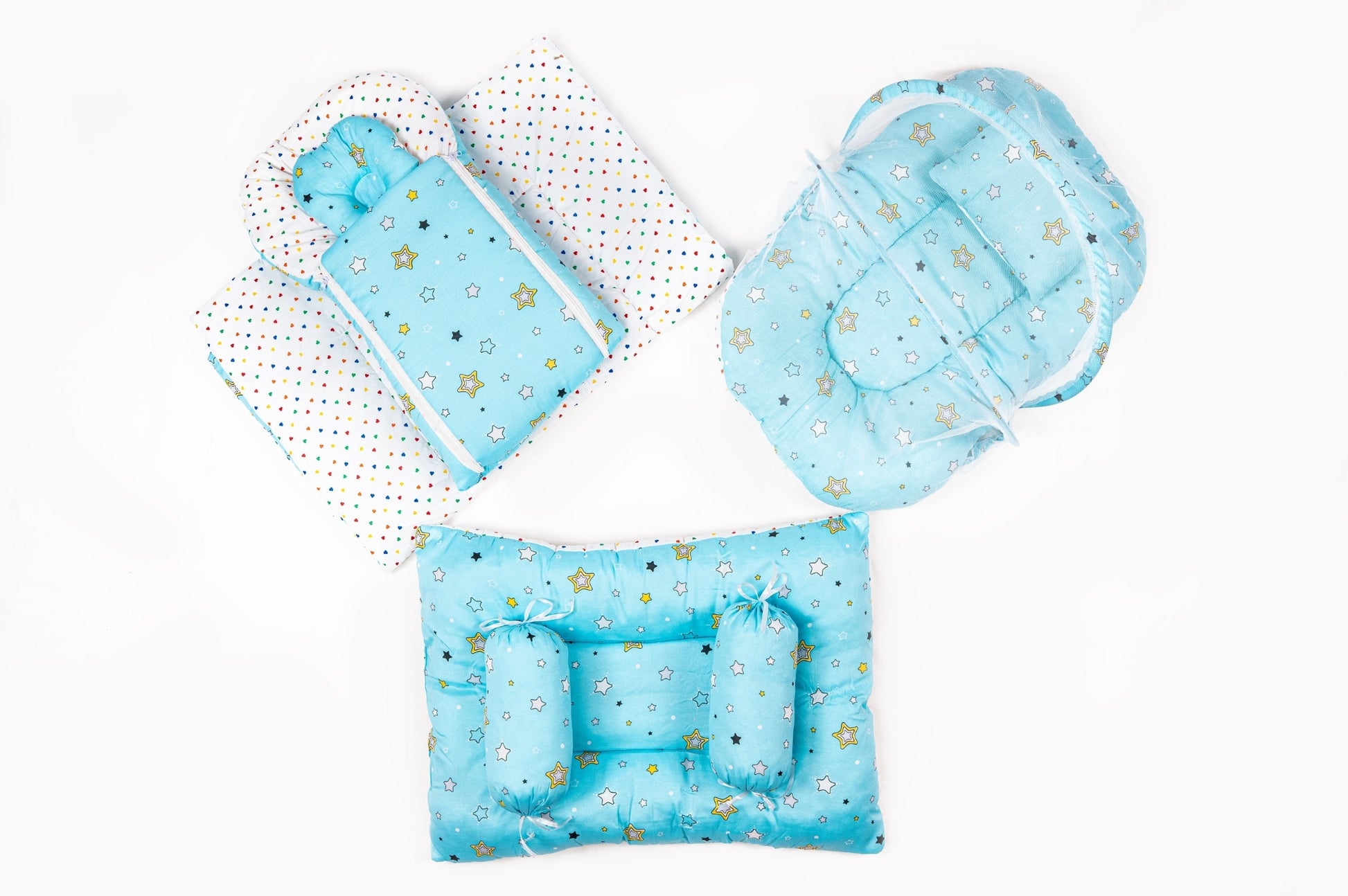 8-Piece Baby Bedding Set – Starry Print - Light Blue
