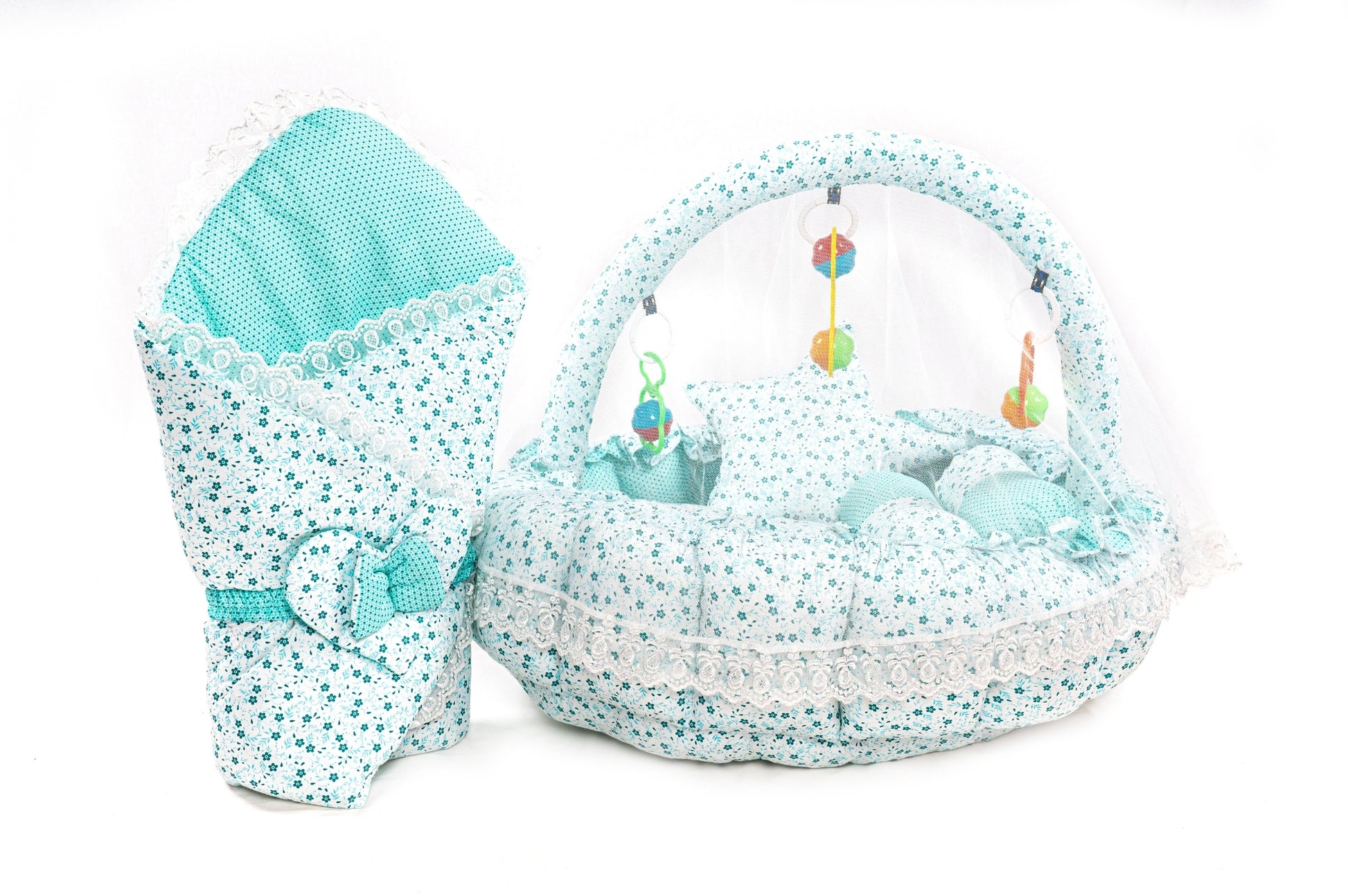 10 Pcs Round Flower Baby Bedding Sett - Flower - Green