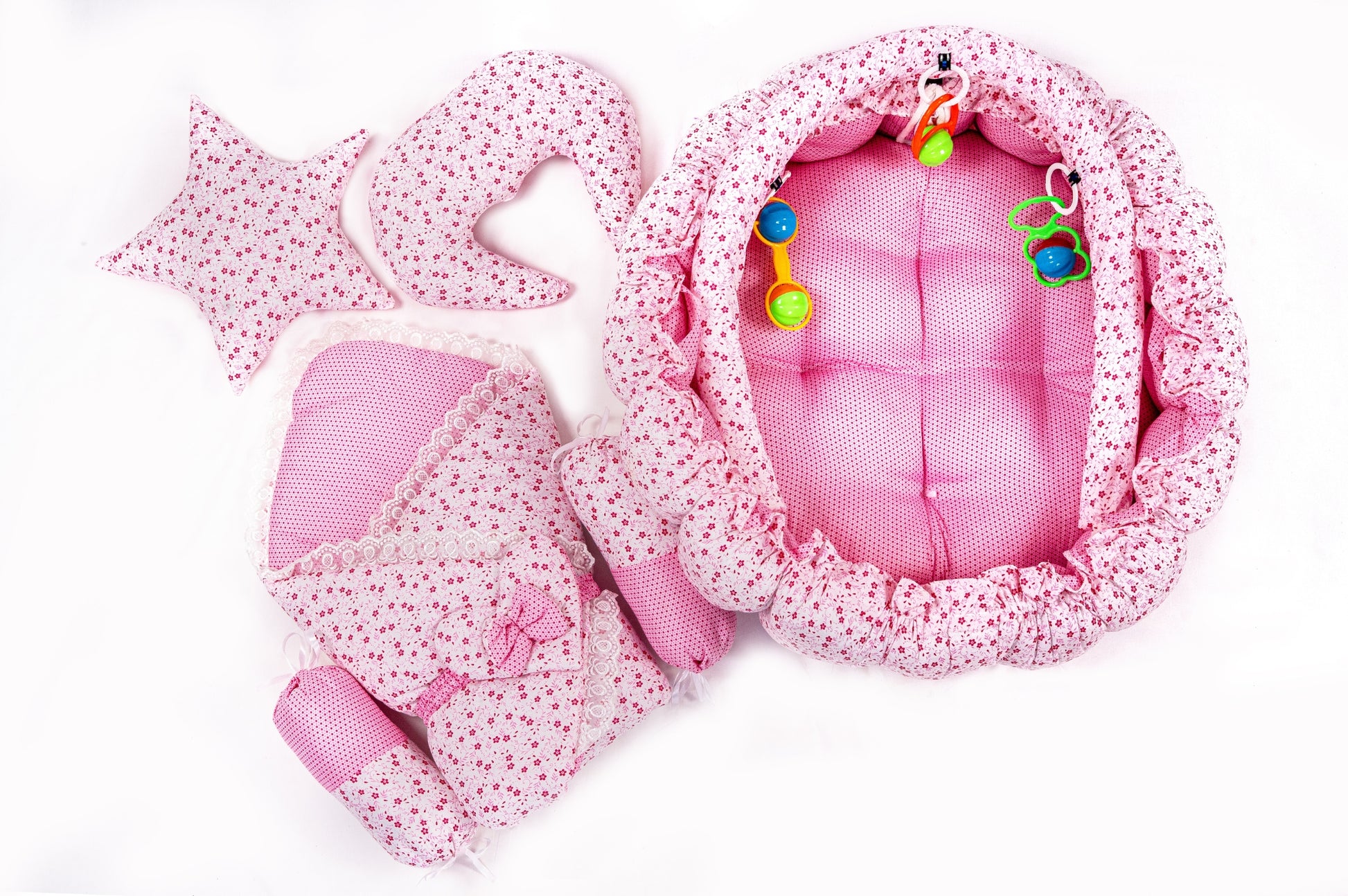 1 Moon Pillow – Shaped to gently support your baby’s head.