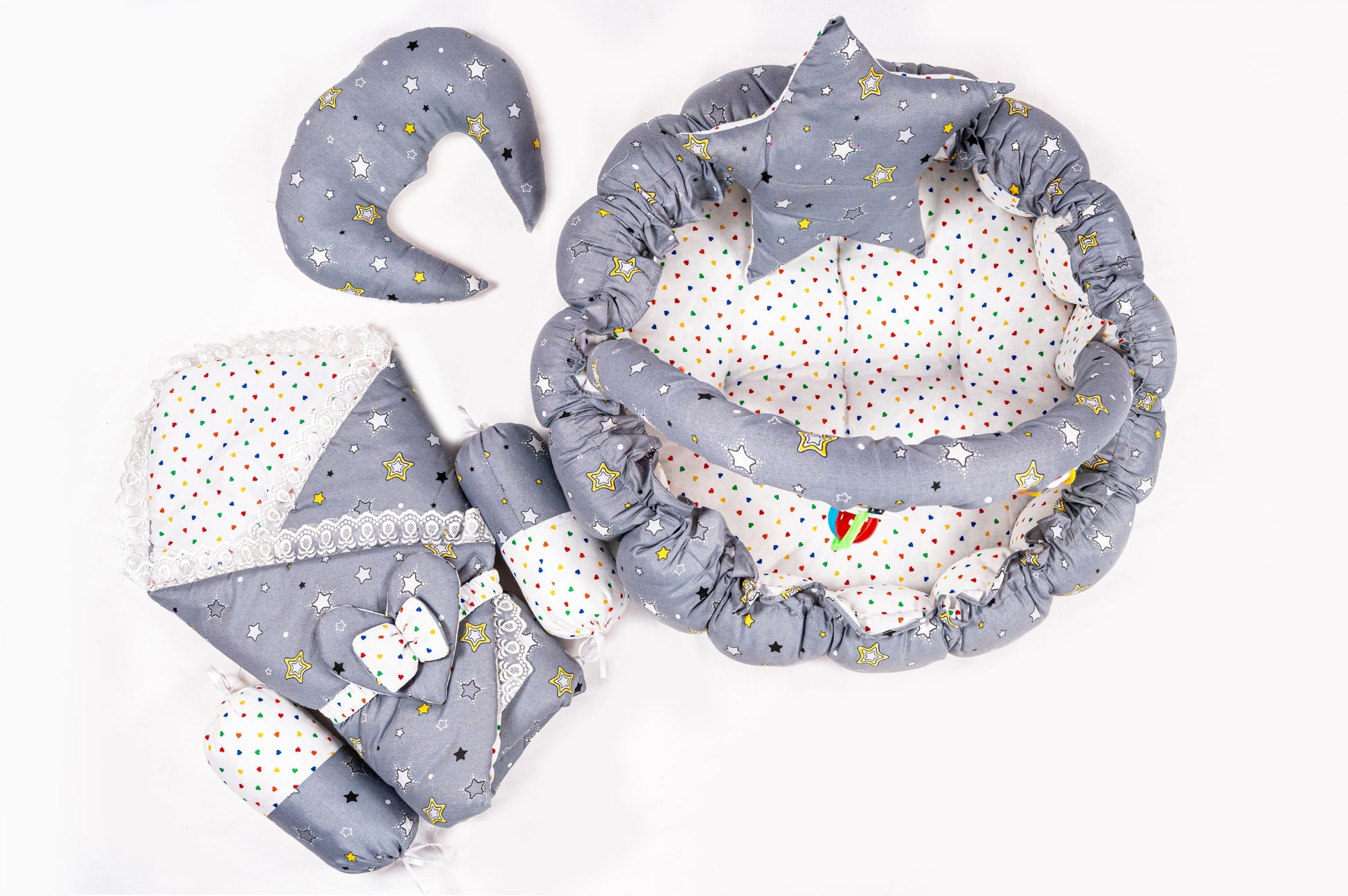 10 Pcs Round Flower Baby Bedding Set - Star - Grey