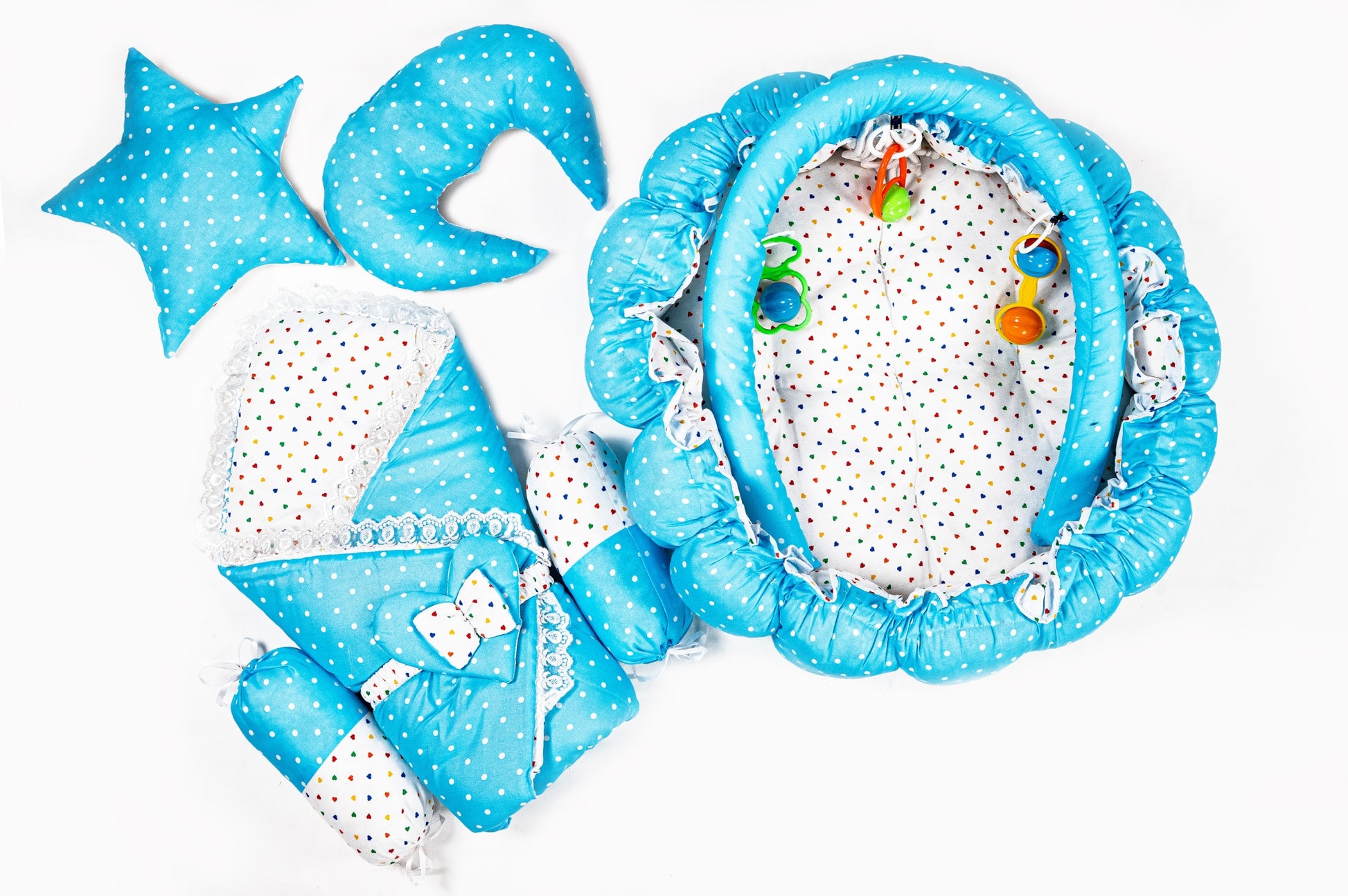 1 Moon Pillow – Shaped to gently support your baby’s head.